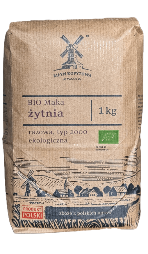 Bio mąka żytnia razowa typ 2000 to w 100% naturalna, ekologiczna mąka produkowana tradycyjnymi metodami z ziaren pochodzących z lokalnych gospodarstw. Mąka nie zawiera żadnych dodatków, wybielaczy ani polepszaczy – to czysta, zdrowa alternatywa dla mąk jasnych.