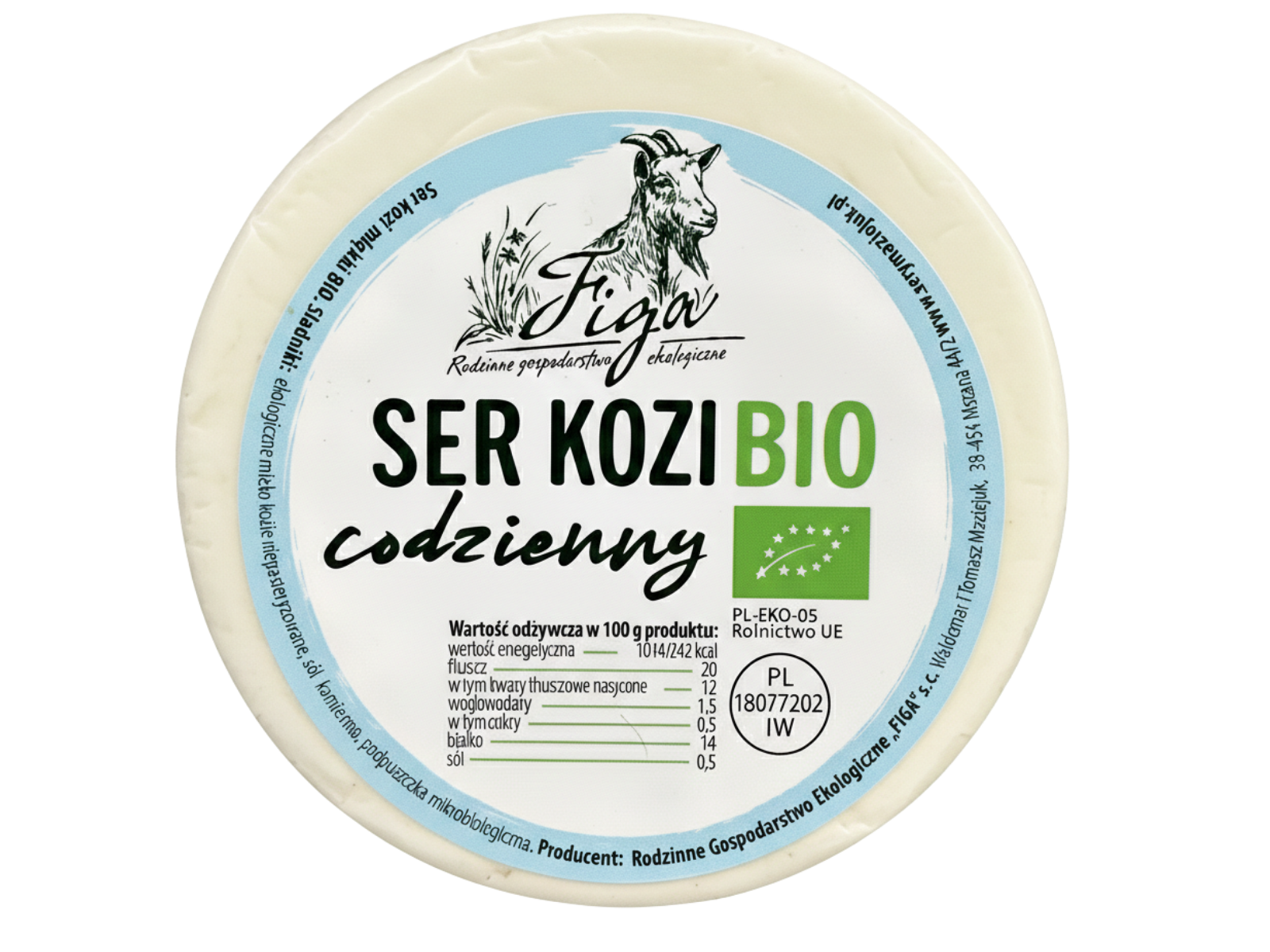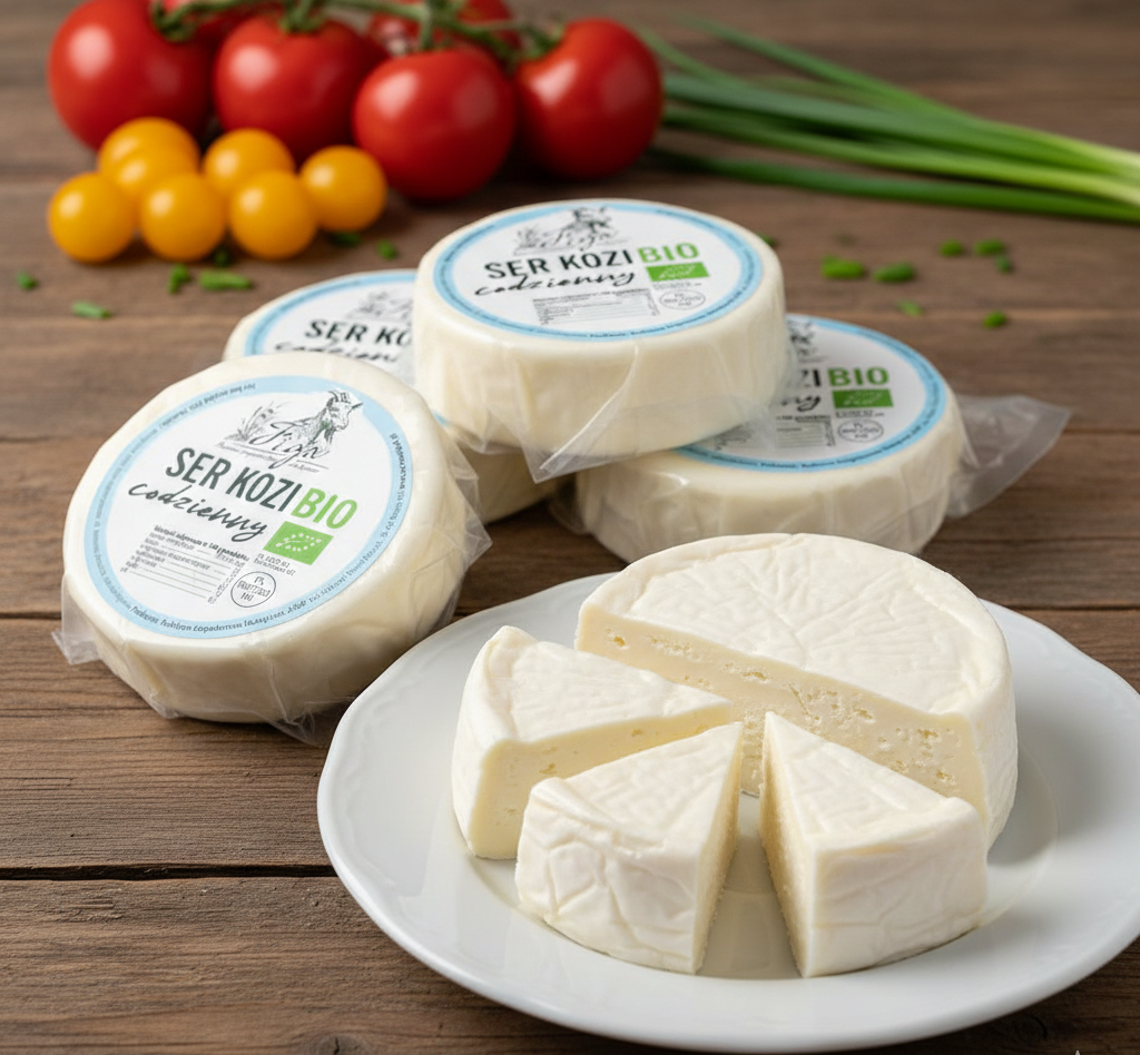 Bio ser kozi codzienny BIO to półmiękki ser podpuszczkowy w formie krążka, wytwarzany z certyfikowanego ekologicznego mleka koziego.
