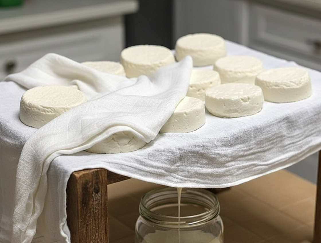 Skład: Ekologiczne mleko kozie niepasteryzowane, sól kamienna podpuszczka mikrobiologiczna.