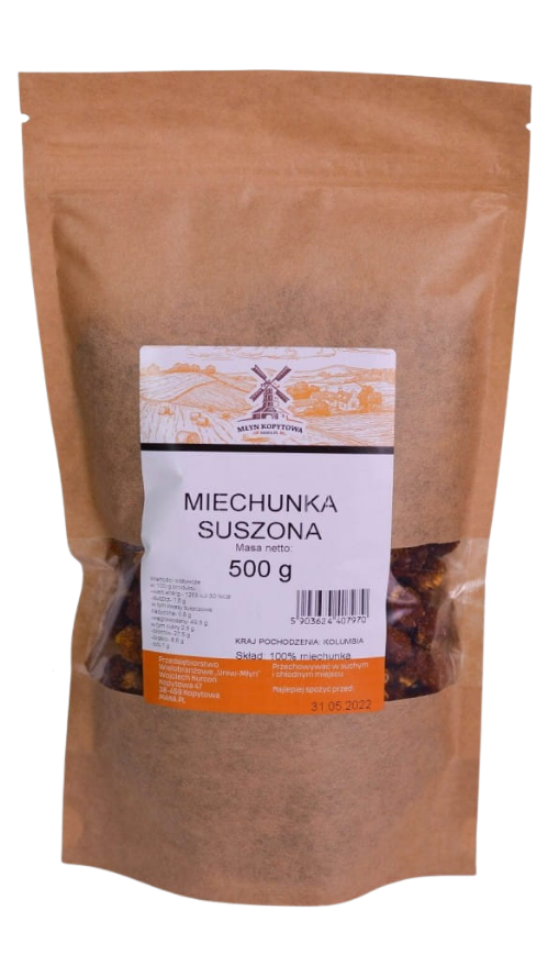 Miechunka pochodzi w 100% z suszonych owoców, bez dodatków, cukru czy konserwantów, zachowując wszystkie cenne składniki odżywcze i antyoksydanty.