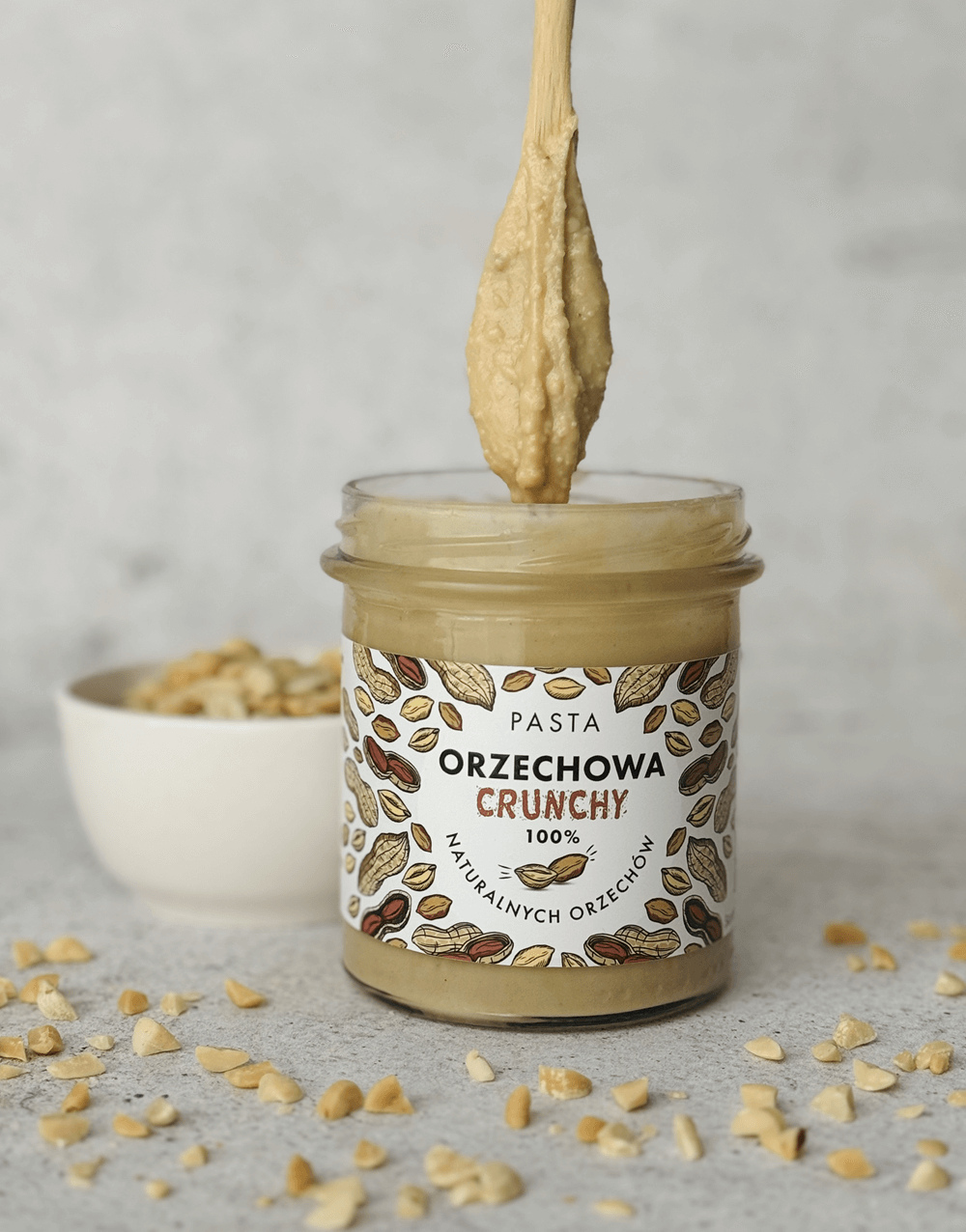 Pasta orzechowa crunchy to wyjątkowy produkt stworzony wyłącznie z prażonych orzeszków ziemnych, bez dodatku cukru, soli czy oleju palmowego. Każda łyżka dostarcza 100% naturalnego smaku orzechów, chrupiącej tekstury i pełni wartości odżywczych.