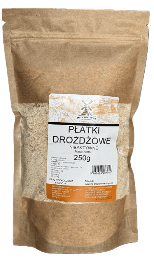 To drożdże Saccharomyces cerevisiae, poddane dezaktywacji wysoką temperaturą, dzięki czemu są całkowicie bezpieczne, lekkostrawne i gotowe do użycia od razu po otwarciu.