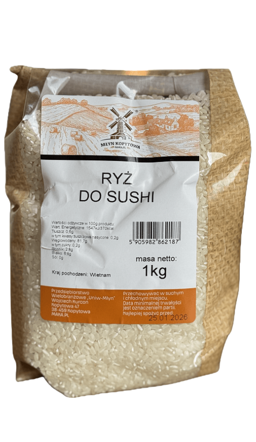 Ryż do sushi jest także naturalnym źródłem energii, bogatym w węglowodany, które dostarczają organizmowi niezbędnego paliwa. Zawiera również niewielkie ilości białka oraz cenne minerały, takie jak żelazo, potas i magnez, a także witaminy z grupy B, wspierające metabolizm i prawidłową pracę układu nerwowego.